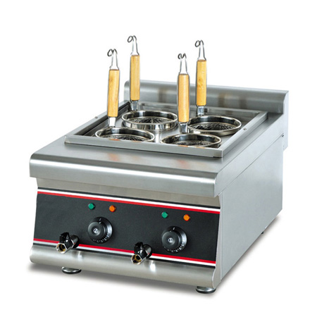 煮面爐也稱煮面機、煮食爐、麻辣燙機等。煮面爐種類較多,按照外形不同可分為立式煮面爐和臺式煮面爐,按照煮面爐孔的多少分四頭煮面爐、六頭煮面爐等,按照使用燃料不同可分為電熱煮面爐和燃氣煮面爐。使用煮面爐既可以煮面,也可以煮粉、煮米線、煮麻辣燙等,而且分格的煮面爐也可以分開同時煮不同的食物,是很多中式快餐店、食堂、小吃店理想的煮面設備!