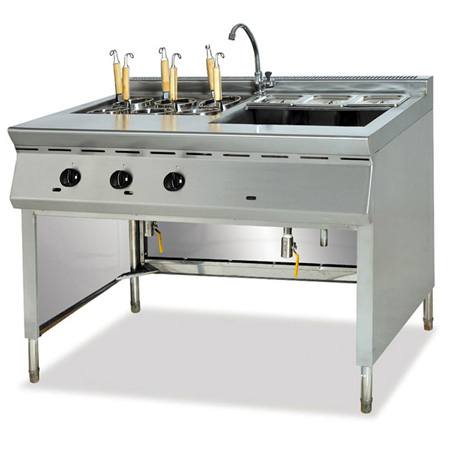 很多朋友還不太清楚有專門的煮面設備,以為就像家里煮面差不多的,在生活節奏比較快捷的大中城市,煮面爐已經成為很多中式快餐店的專用煮面設備,煮面爐市場需求比較大,原來都是中型以上快餐店采購,現在很多街頭小店也使用煮面爐,他們采購小型煮面爐,有的用來做早點,用煮面爐煮面條、煮米線等,也有的在寫字樓集中的底商開店,可以有電熱煮面爐煮酸辣粉,也可以煮麻辣燙,代替了傳統的麻辣燙機器。如果條件允許的地方,一般都采用節能新型燃氣煮面爐,主要集中在學校食堂、機關食堂等場所,燃氣節能煮面爐煮面非常快捷,而且節能環保,所以非常受歡迎!
