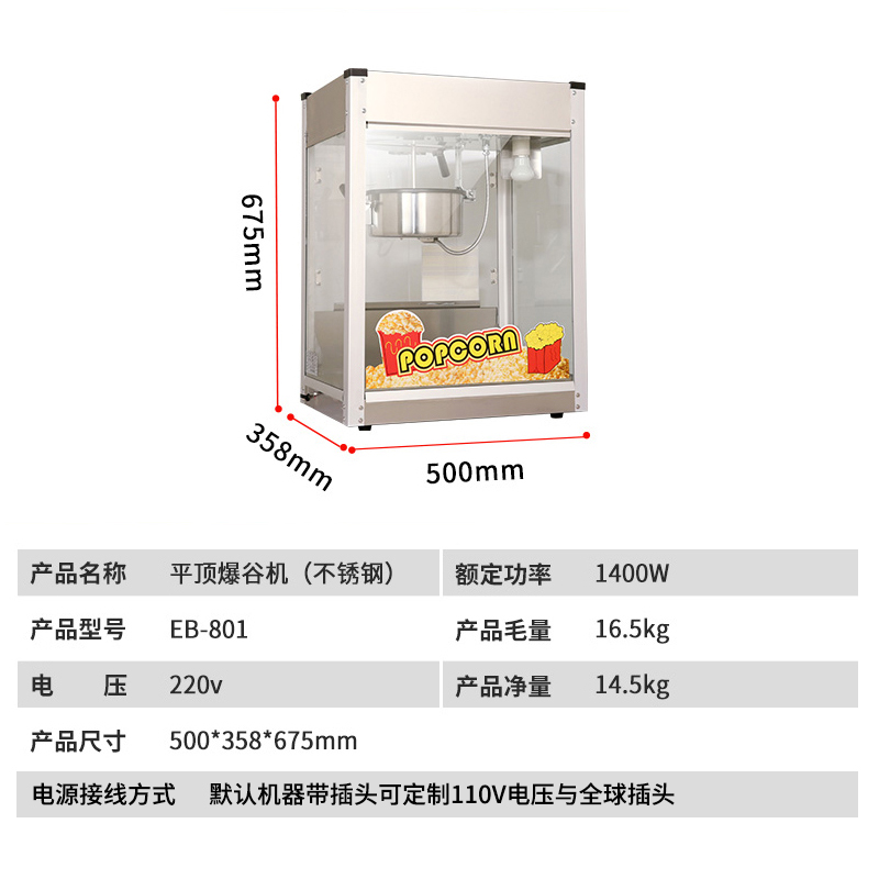 點擊查看大圖富祺EB-801平頂爆谷機(不銹鋼)