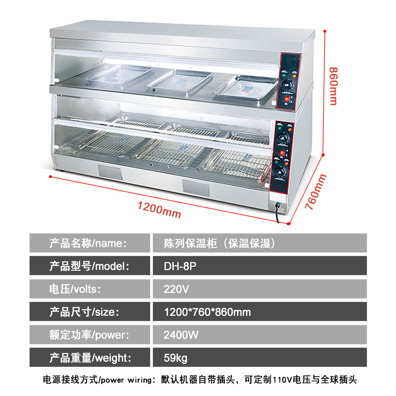 特性:不銹鋼結構,高效能發熱線,溫控功能,保溫保濕功能。整機采用雙層隔熱,正面采用透視隔熱玻璃,透視性強,可全方位展示食物,既美觀又耐用。二層單獨控溫、保濕型設計,更實用、更省電;全機采用紅外線保溫燈,增強展示效果,同時起殺菌的作用,保持食物的衛生。全機采用不銹鋼材料,方便用戶清潔,保持展示柜的嶄新,保證展品的效果。.jpg)